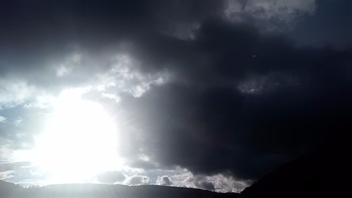 ... po celý den srážky, občas i značně intenzivní, momentálně pouze drobně mží, rychlý postup oblačnosti od SZ, silnější, nárazovitý Z - SZ vítr, po celý den převážně zcela zatažená obloha pouze od druhé do cca čtvrté odpolední si matka příroda zašpásovala a předvedla ukázkové májové počasí kdy chvilkové slunečné oblačno střídaly intenzivní lijáky...
