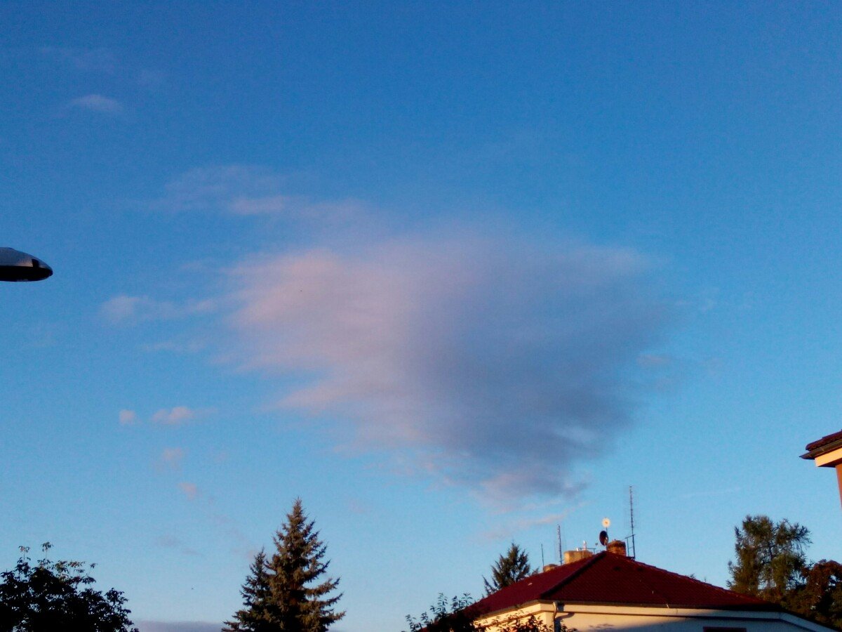 Doznívající přeháňka, tlak 1015,0 hPa, slabý S vítr.