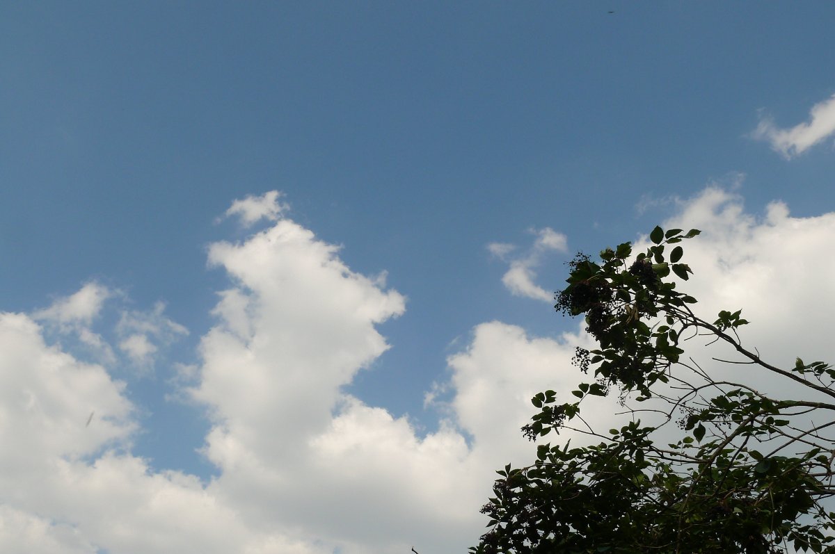 Už se objevují mráčky. Tlak 1022 hPa, vlhkost 20%, vítr S 1,6 m/s.
