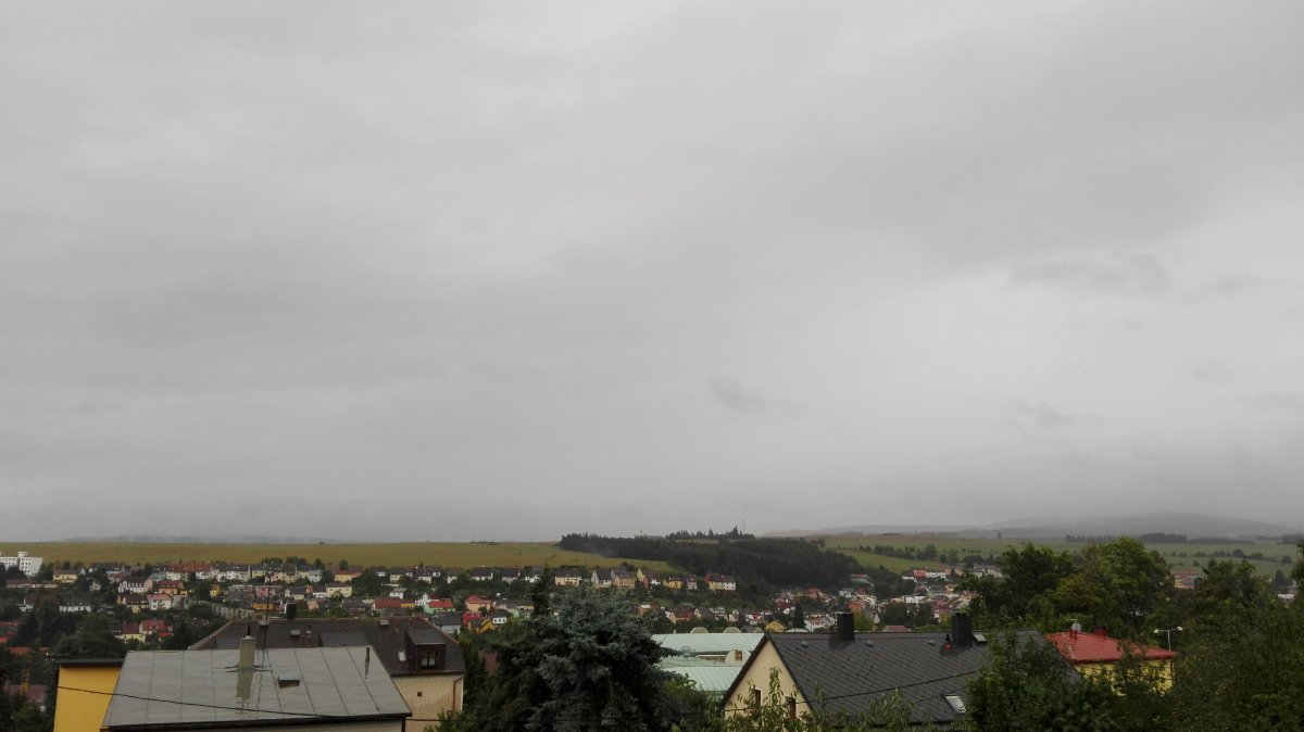 Tlak 1010 , vlhkost 80% a Milešovka v oparu, po dešti, který ustal.