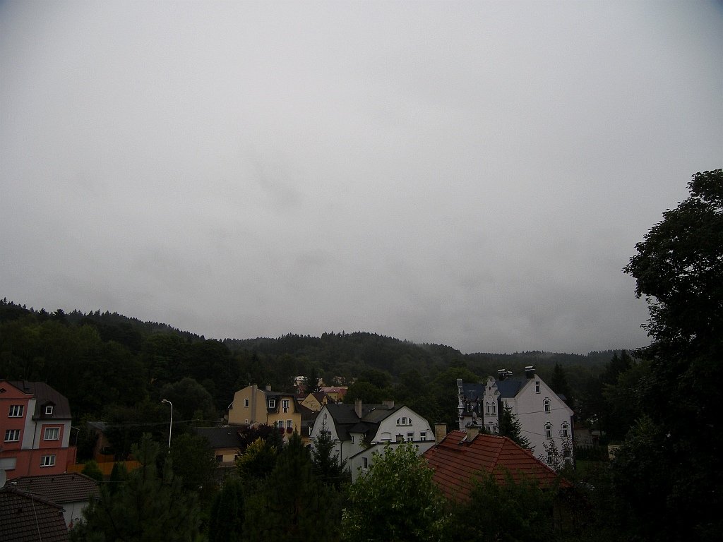 Je zatazeno a jeste slabe prsi a je bezvetri. V Horicich do rana spadlo 5 mm srazek a kdyz sem sel 7:45 hod na bus tak prselo.