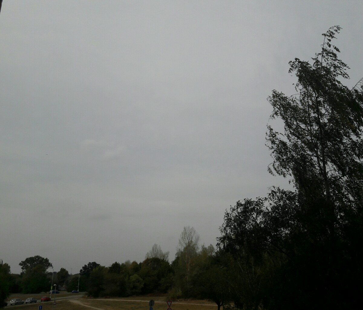 Skoro zataženo, vysoká oblačnost, výhled na České středohoří