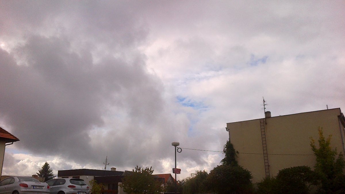 Po přeháňkách se oblačnost přechodně protrhala,slabý vítr,tlak 1020 hPa