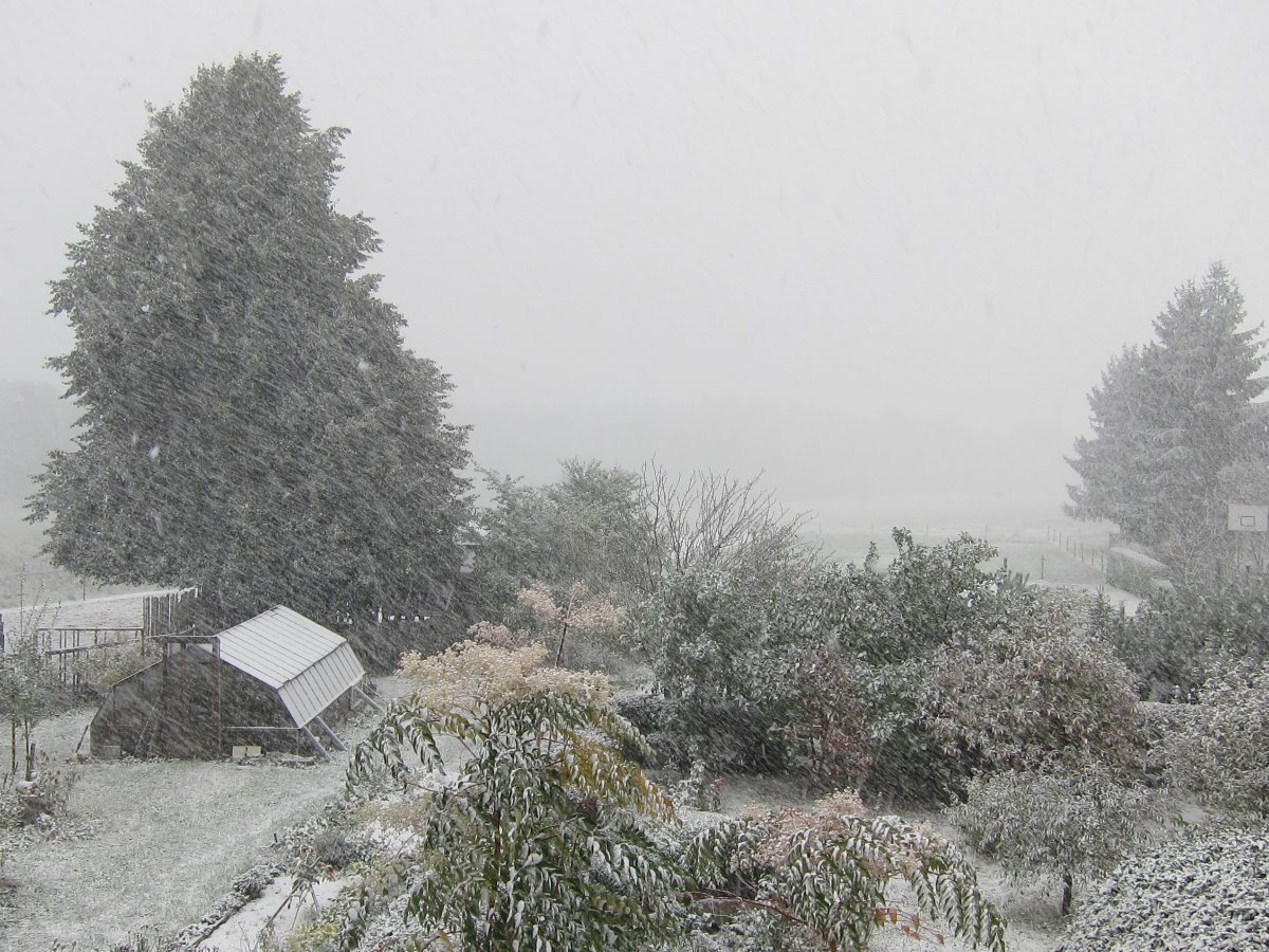 Prší(2mm/hod.), oblačnost 98,7%, zákl.oblačnosti 764,82m.n.m., tlak 1022,2hPa→, dohlednost 10km, rel.vlhkost 88,8%, abs.vlhkost 5,21g/m3, mírný SZ vítr 319° 7,1m/s(4 Bft), poc.teplota -3,99°C, ochl.větrem -2,35°C, tepl.ros.bodu 1,12°C, tepl.mraků -0,27°C, HUMIDEX 2(přijatelný stav), délka dne u nás 11hod.21min.41vt.