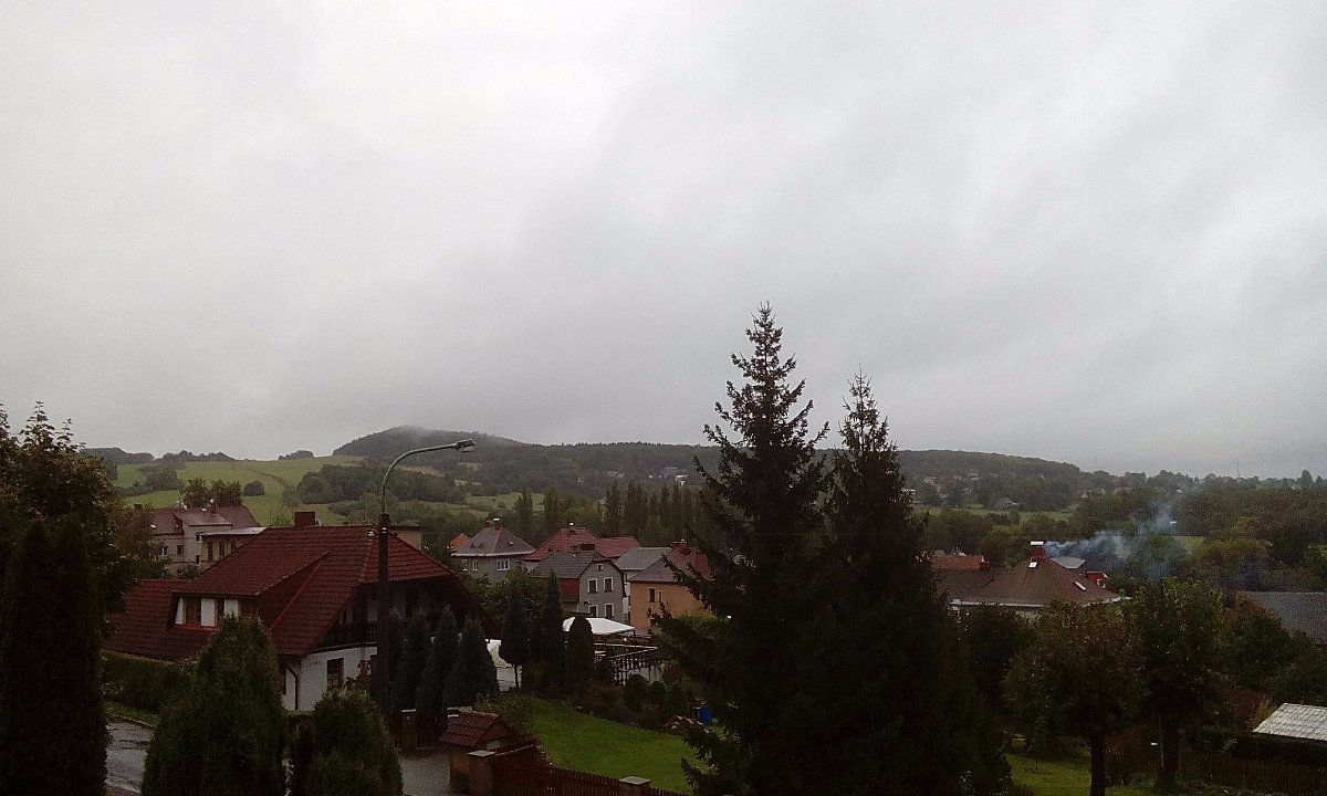 Slabý vítr. Tlak : 1015,8 hPa. Setrvalý stav. Déšť občas a velmi slabý.