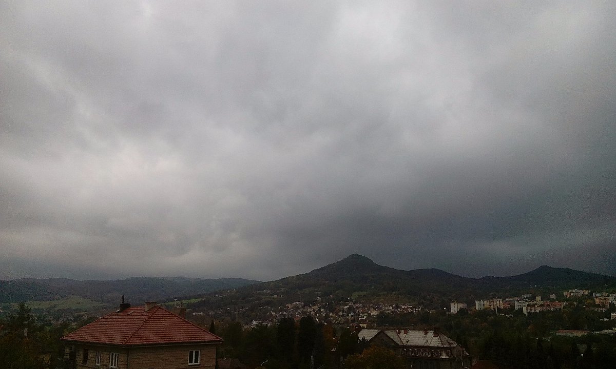 Slabý až mírný déšť, tlak 1017,2 hPa, JV vítr do 3 m/s.