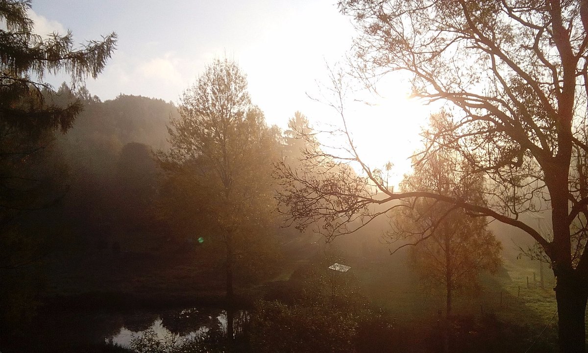 Západní vánek, tlak 1017,3 hPa a vlhkost 94 %.
