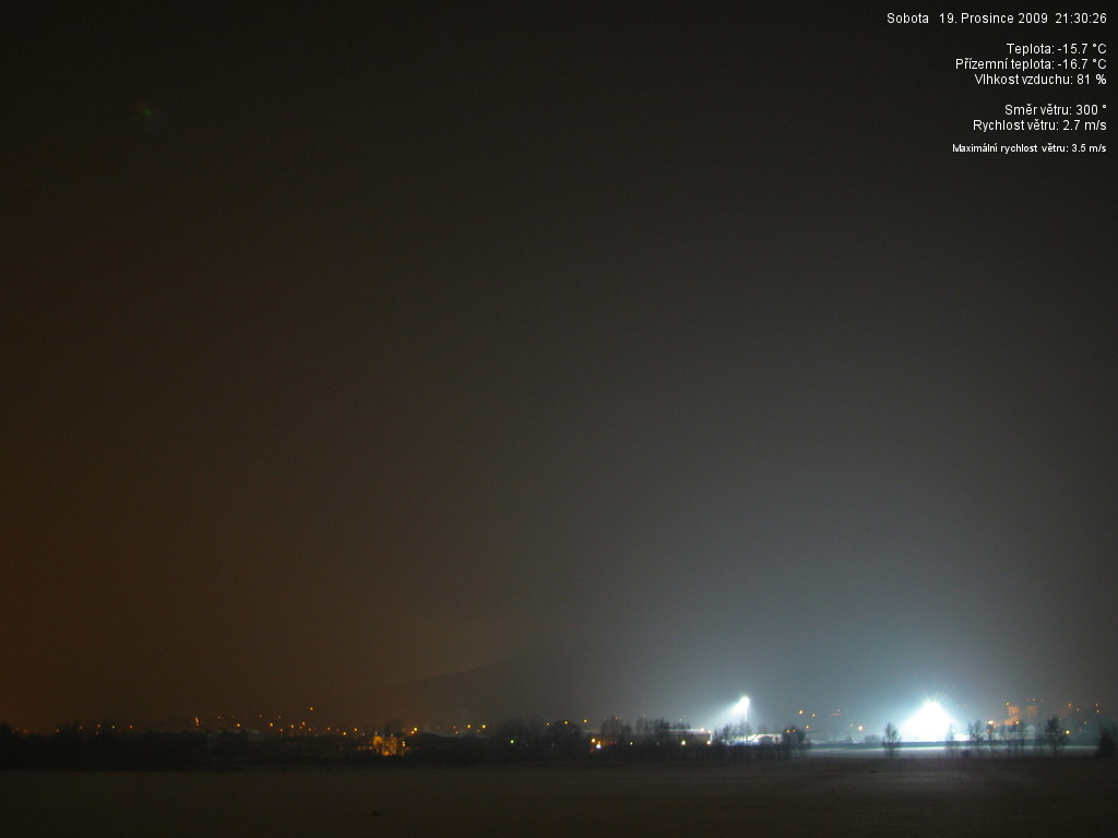 Zataženo,slabě sněží,-11.8 stupňů,kolem 6 cm sněhu,vlhkost 88%,vítr 0.3 m/s.... Dobrou noc všem..... :-)