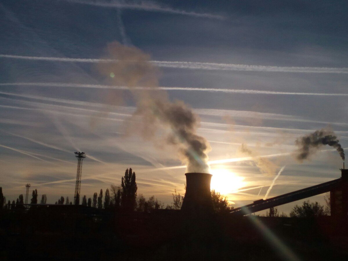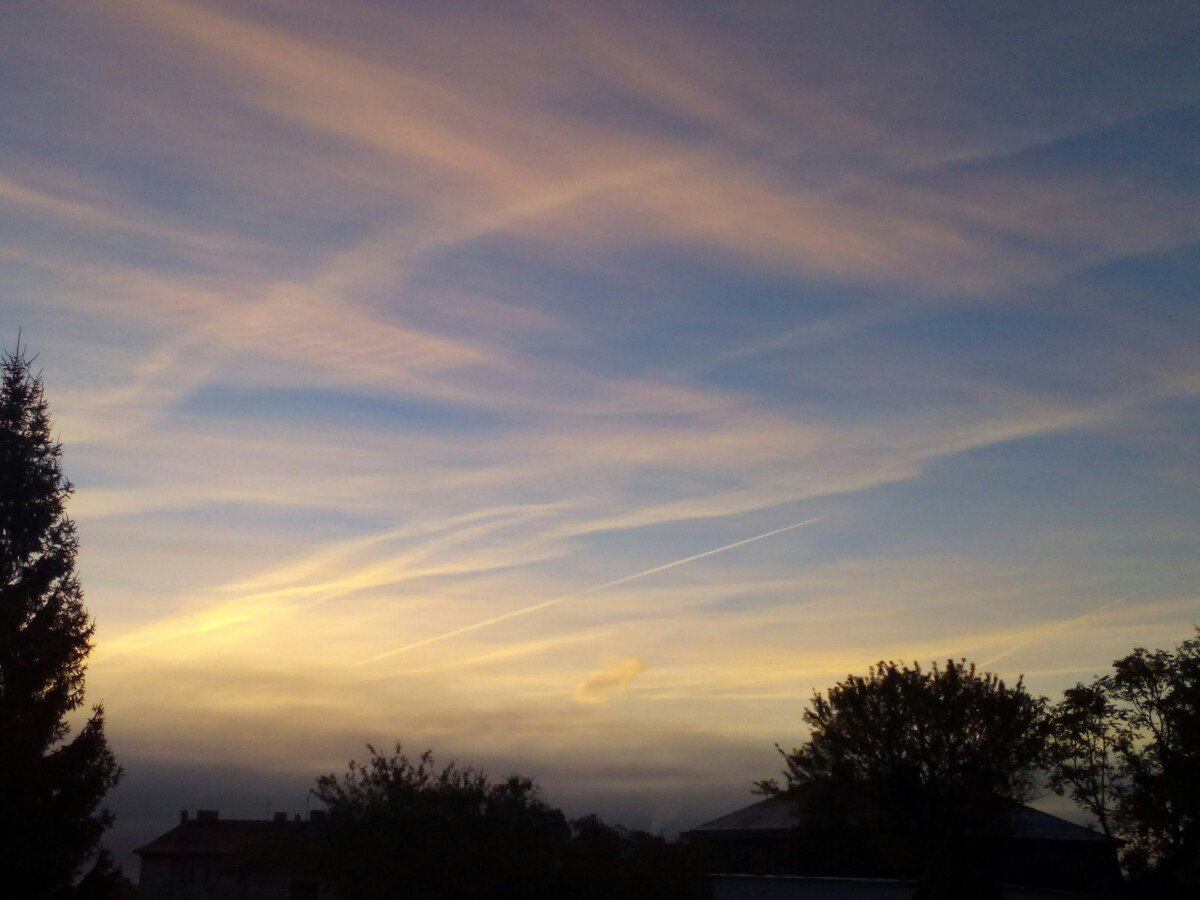 ... teploměr na východní straně zarputile hájí stupeň nad nulou ... ale i na "vyhřívaných" trávnících mezi paneláky šedivák a namrzlá okna aut, ...letadlí červánky a také do oudolíčka klesající dým z komínů baráčníků ve stráni nesený SSZ vánkem na pláně k Plané :-) ....