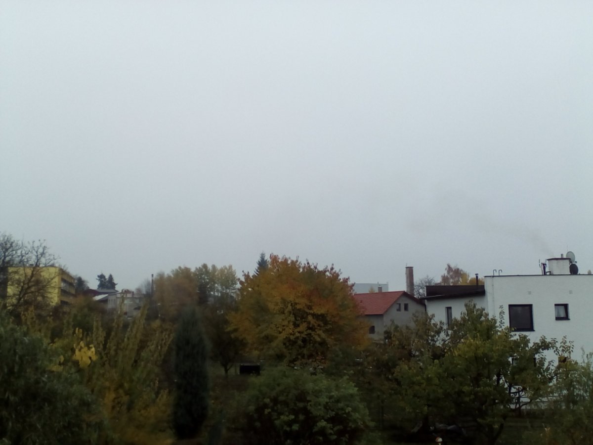 Slabý až mírný déšť, tlak 997,6 hPa, SZ vítr do 4 m/s.