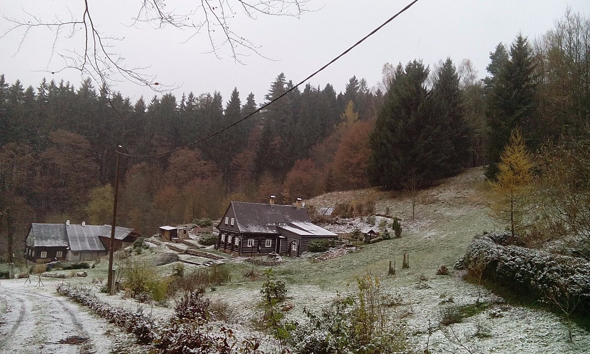 ráno sňežilo,ted už jen sem tam poletují vločky a je mlhavo