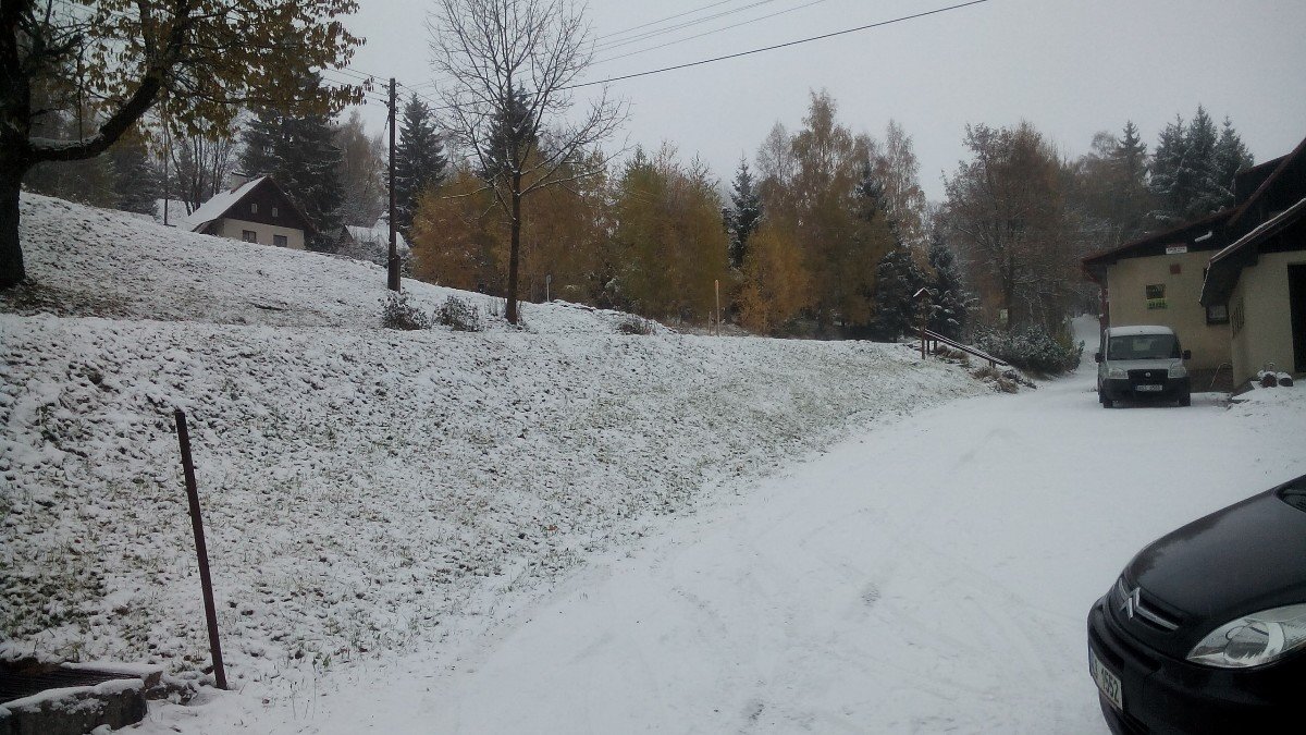... utáto od rána, za asistence rozličných přeháněk (momentálně drobně mží, před chvilkou déšť se sněhem), přesto jakžtakž bílo, ale rozbředlo - zataženo zcela a proměnlivě vánkově :-)...