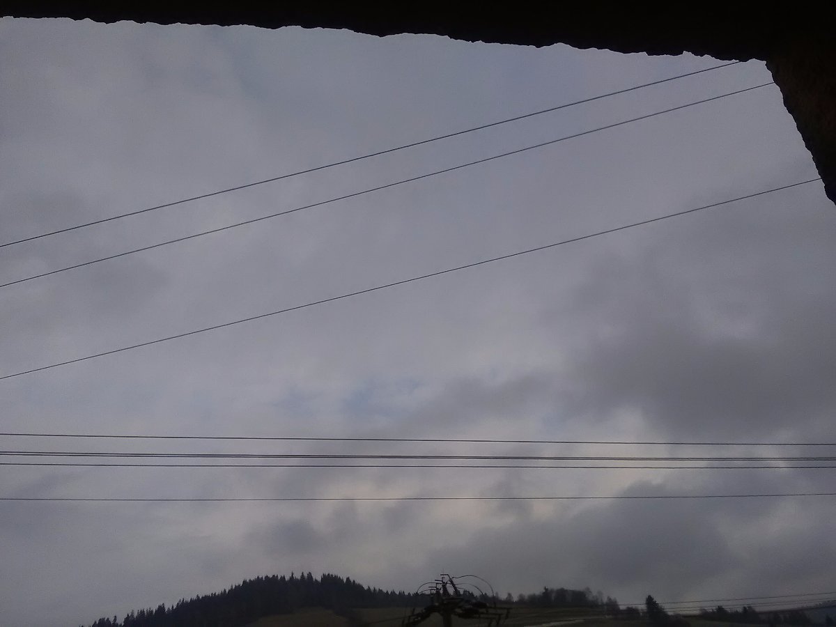 Slunce se snaží prokouknout skrz mraky a hustou mlhu všude kolem.
