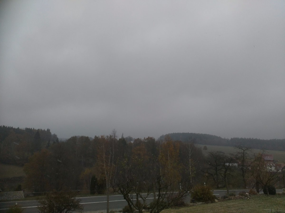 Slabě sněží, oblačnost 98,9%, zákl.oblačnosti 719,37m.n.m., tlak 1019,6hPa▲, dohlednost 5km, rel.vlhkost 89,8%, abs.vlhkost 4,69g/m3, slabý S vítr 357° 4,6m/s(3 Bft), poc.teplota -4,17°C, ochl.větrem -3,31°C, tepl.ros.bodu -0,38°C, tepl.mraků -1,69°C, ozon 308D.U.(+4%,normální stav), HUMIDEX -1.