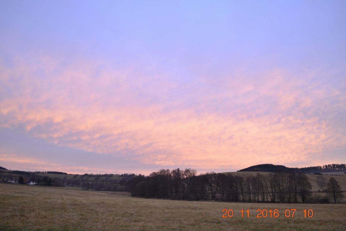 tlak: 1008,8 hPa, stále prší, slabý vítr dohlednost: < 3 km- stále se mění