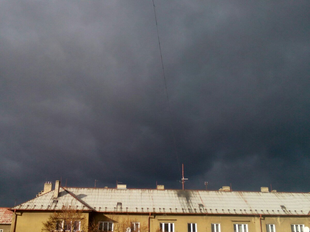 Sněhová přeháňka a s deštěm. Vítr S 3,4 m/s.