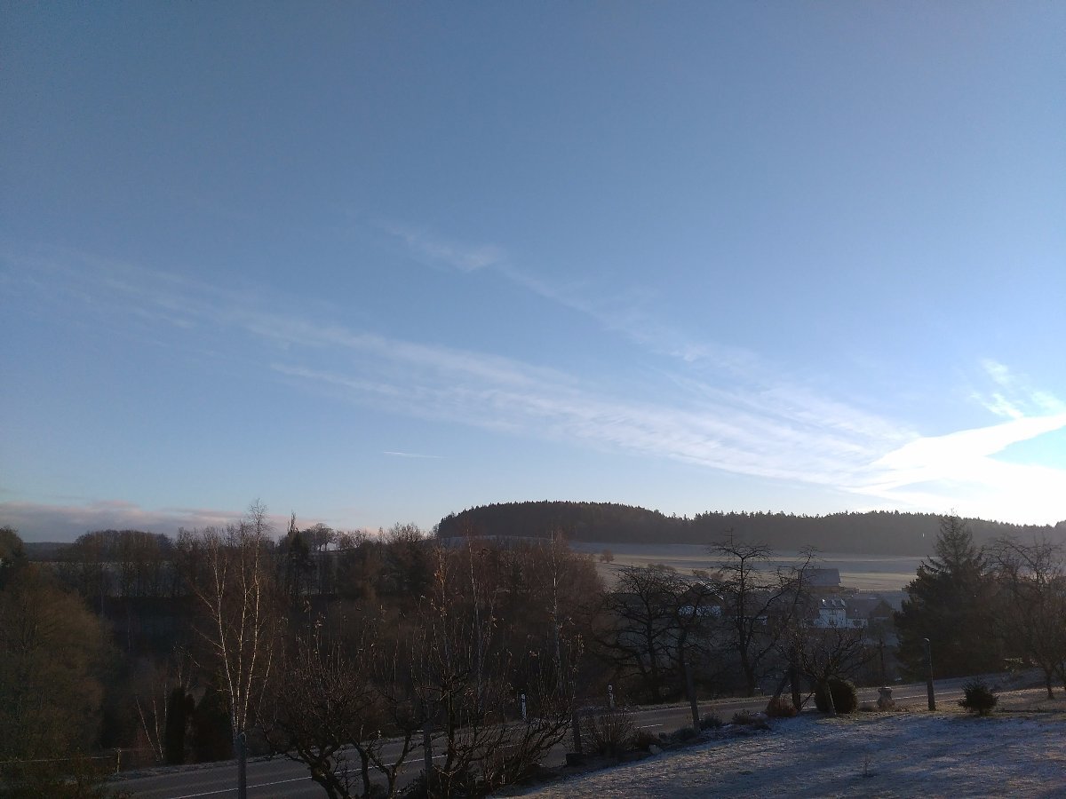 Přibývání oblačnosti od S, tlak 1023,3 hPa, vlhkost 93 %, S vítr do 2 m/s.