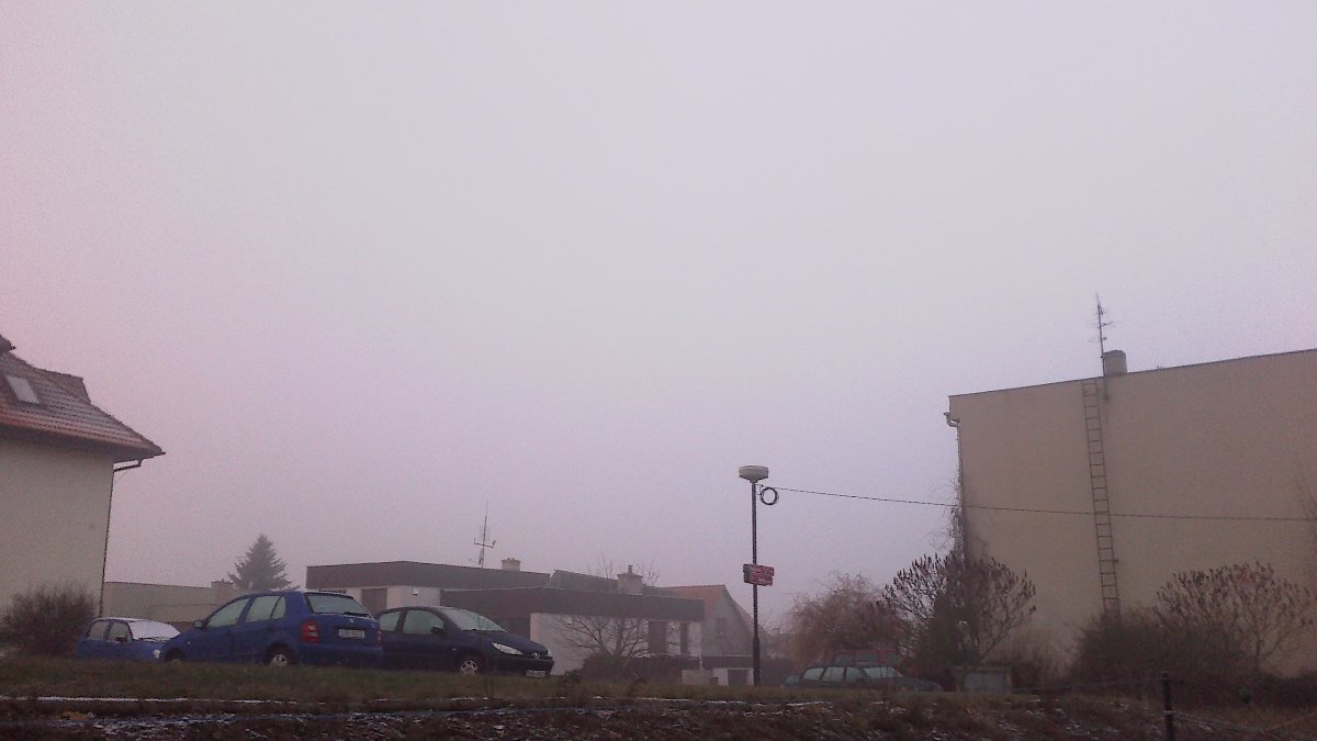 Mrzne a tak to má v prosinci být. Tlak 1032 hPa, vlhkost 70%, vítr S.