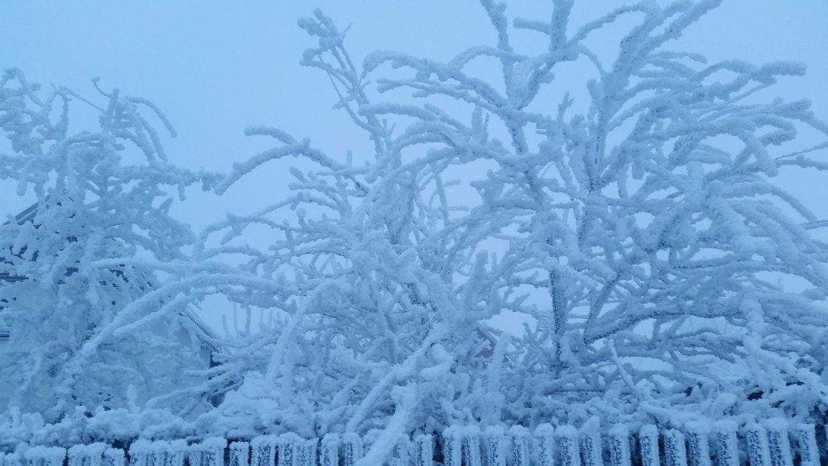 zataženo, mrznoucí mlha a mrholení, občas drobně sněží, silná námraza!