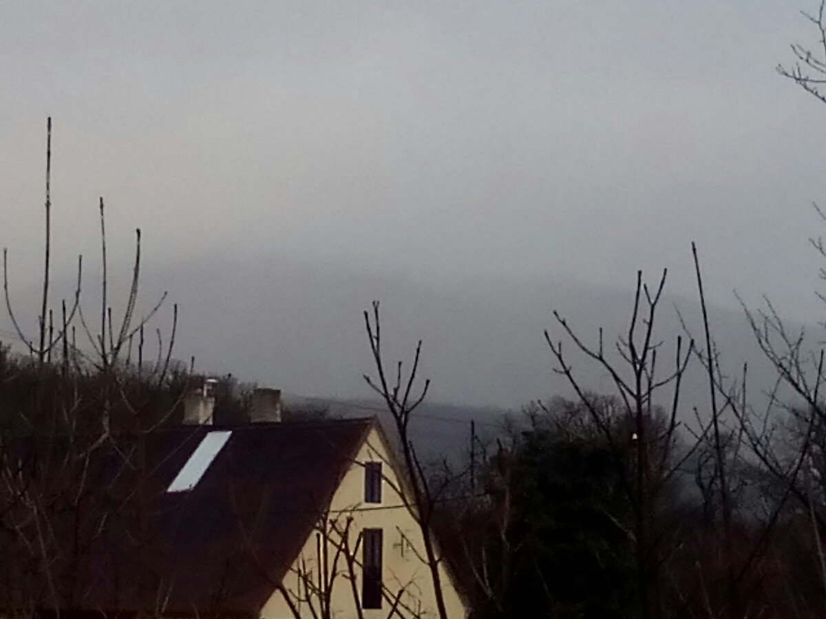 Oblačno, občas zamračené, miestami slabunké sneženie.