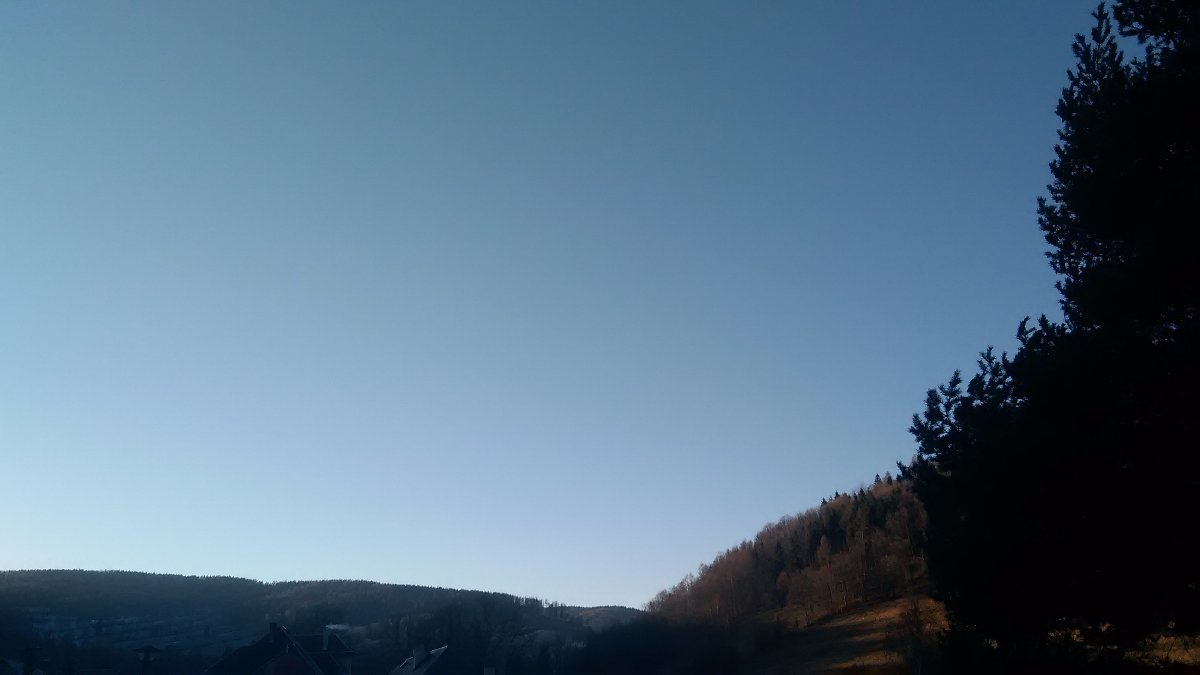... konečně po dlouhé době a zatím jen maličko, zahlédlo mezi mraky sluníčko i naše údolíčko... otočilo se proudění oblačnosti - velmi líně od JV - a s ním i vánek, oblačnost 7/10...