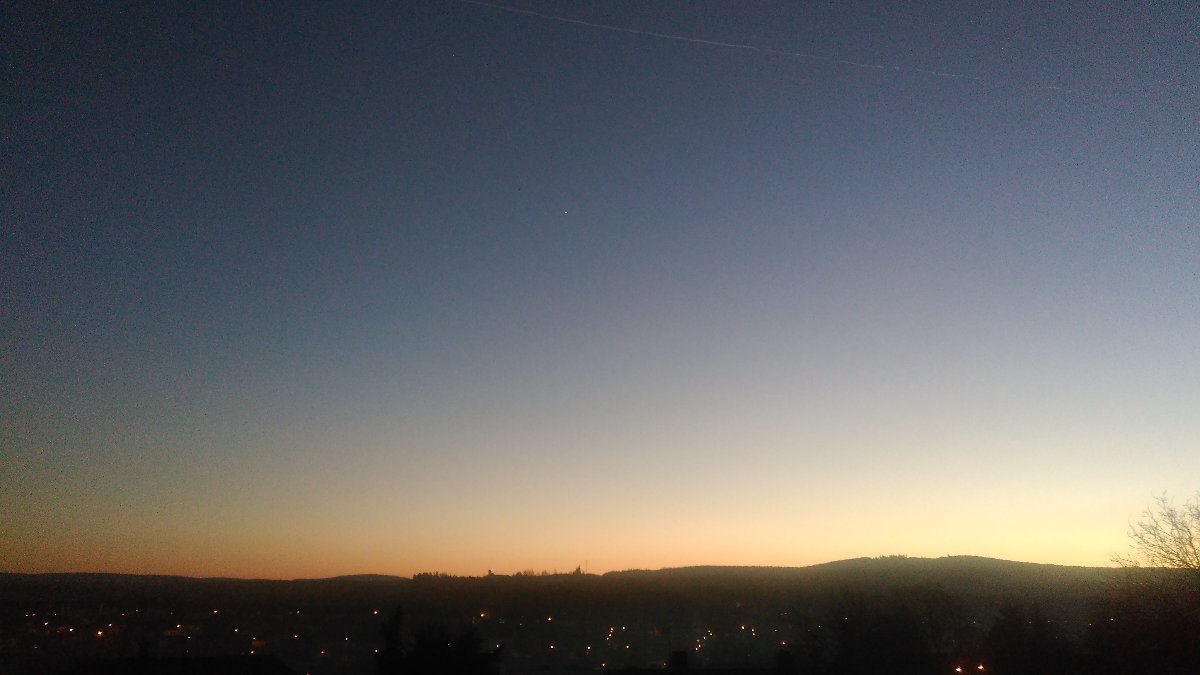 foto z 2016 12 30 v 07:05:00 zachycuje na obzoru mraky nad hlavou jasno, vítr nefouká - jen ten sníh chybí
