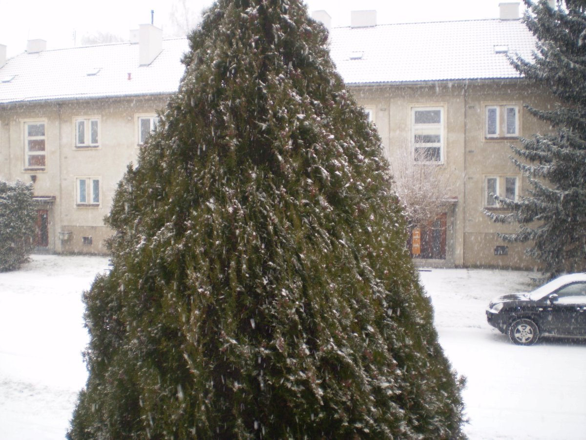 Zataženo, slabé trvalé sněžení, klidno, tlak 1008 hPa.