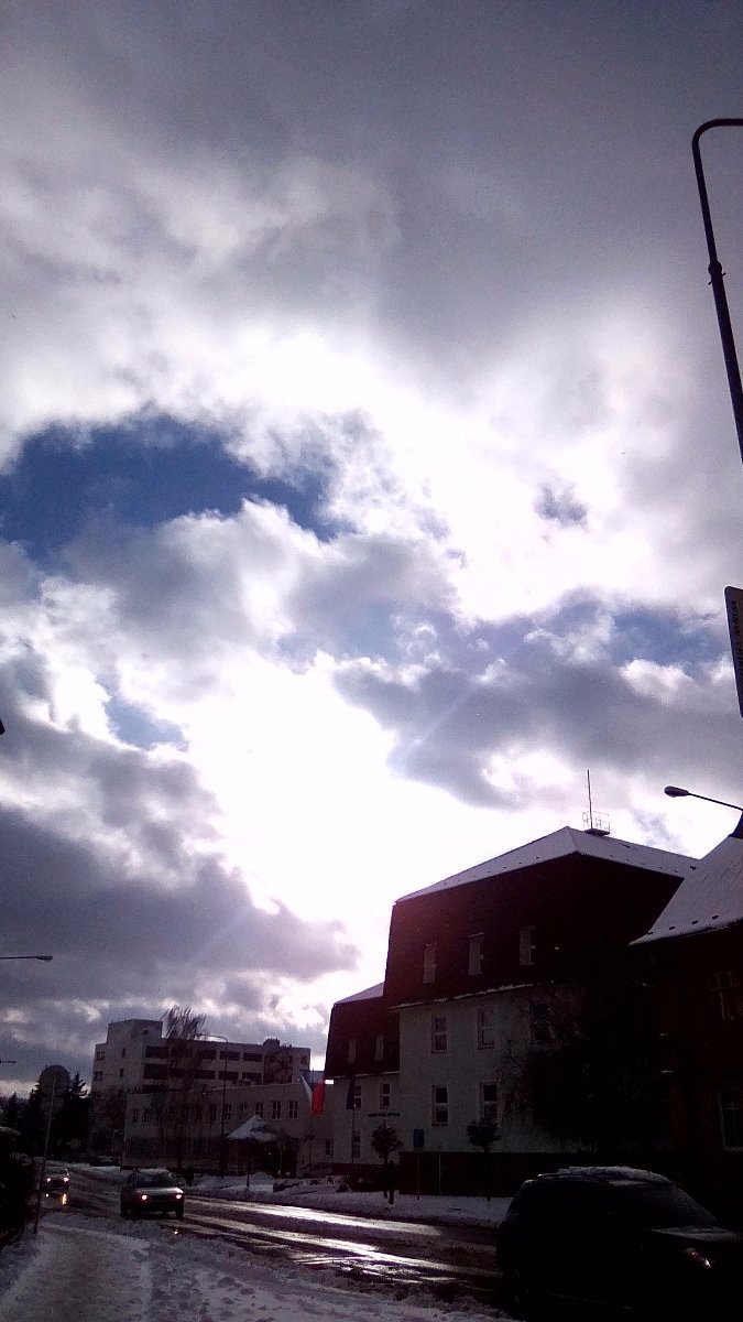 Vítr do 8m/s - směr Z, vlhkost: 90%, tlak: 1004 hPa. Zataženo s drobným sněžením.