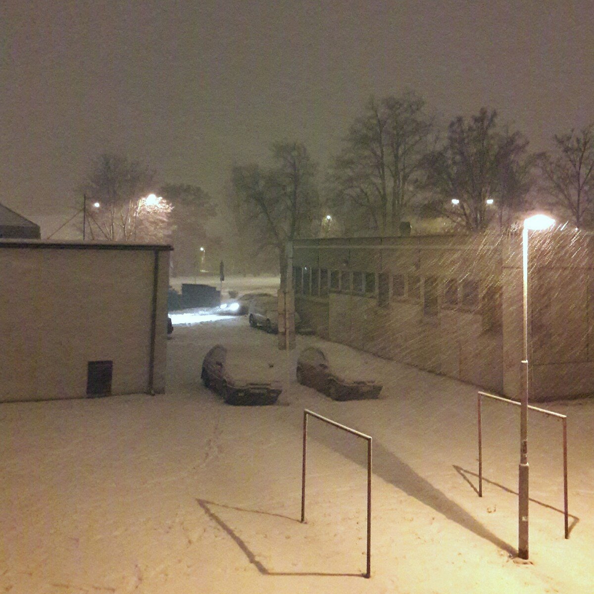Právě po pulhodinové přehánce napadly 3cm nového sněhu,teplota díky tomu spadla o dva stupně na nulu.