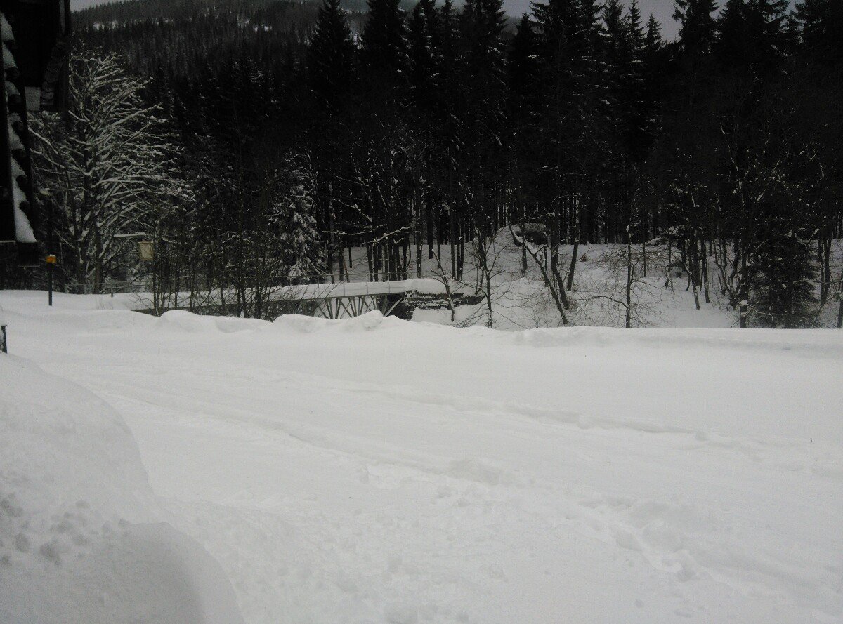 foto z 2017 01 05 v 09:32:00 zachycuje pohled z okna - přes noc spadl jen takový poprašek - na zahrádce je znát, že včera tálo - vítr zatím nefouká