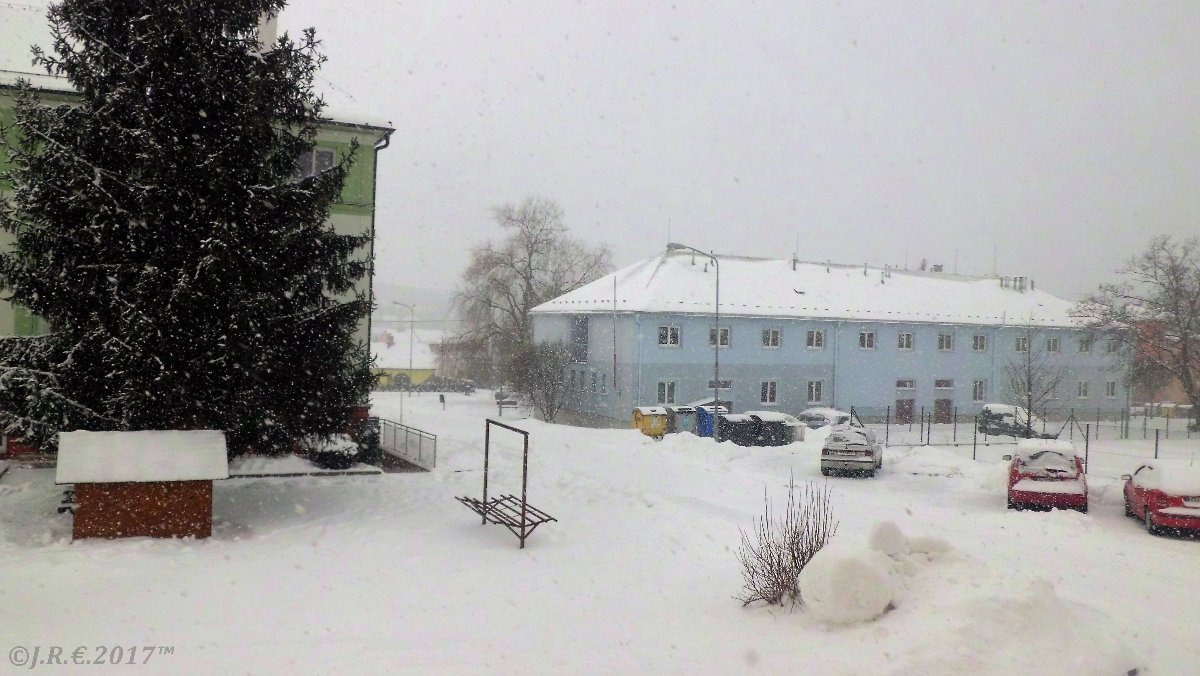 Zamračené,, slabé sneženie, veterno.