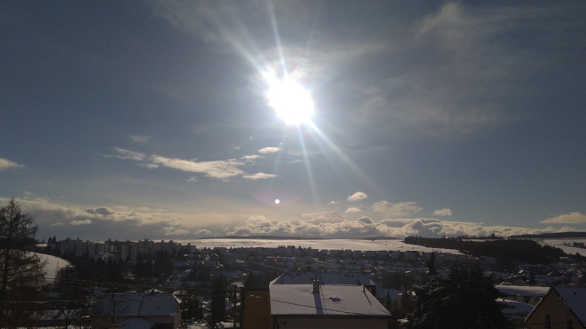 Sněží, oblačnost 100%, zákl.oblačnosti 1139,82m.n.m., tlak 1013,3hPa▲, dohlednost 1km, rel.vlhkost 77,7%, abs.vlhkost 2,70g/m3, slabý SZ vítr 315° 4,8m/s(3 Bft), poc.teplota -10,99°C, ochl.větrem -10,65°C, tepl.ros.bodu -8,03°C, tepl.mraků -10,10°C, ozon 382D.U.(+12%,nadprůměrný stav), HUMIDEX -7.