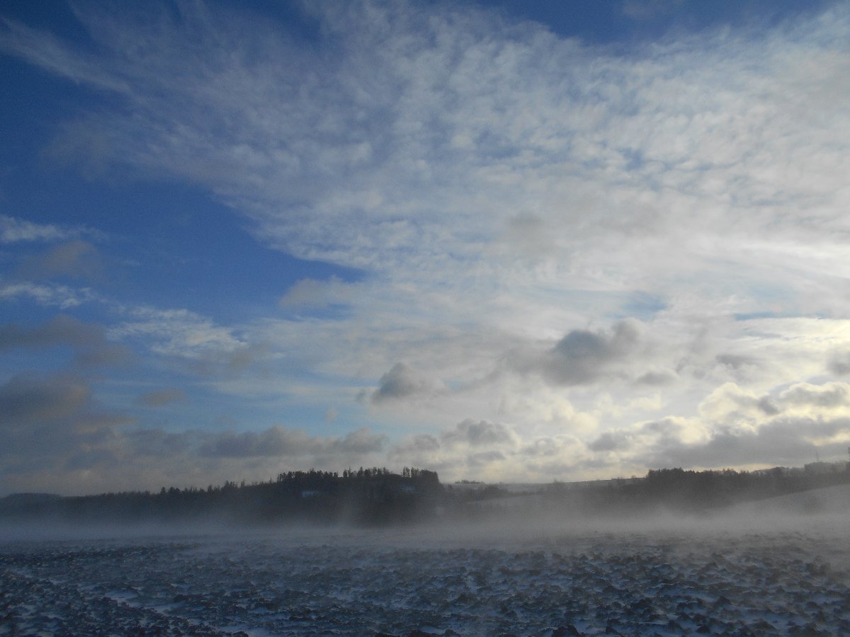 Od rána sněhové přeháňky s proměnlivou oblačností. Severní větřík, tlak 1026,4 hPa a vlhkost 78 %.