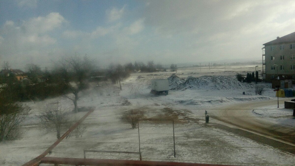 Zima, občasné slabé sněhové přeháňky a čerstvý ledový vítr.
