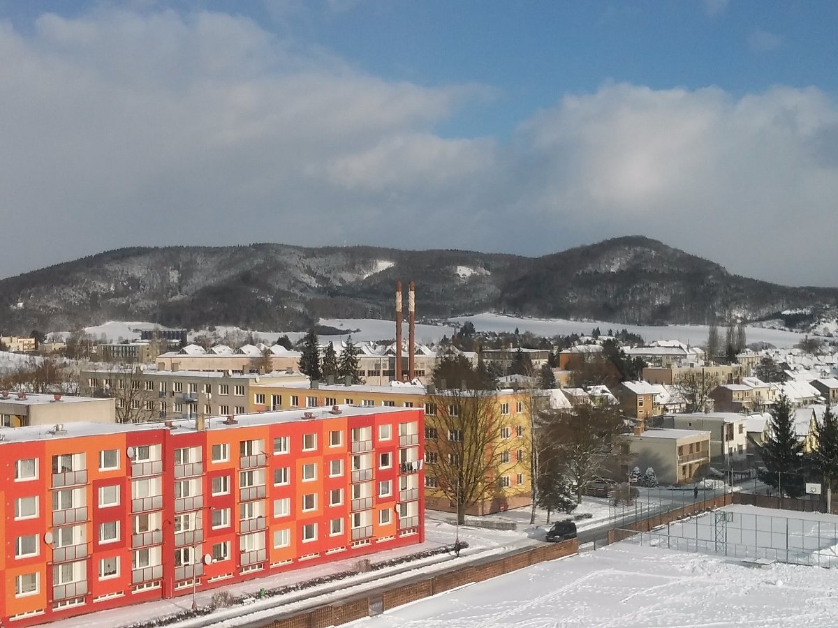 dopoledne polojasno až oblačno a občasné sněžení, Aktuálně skoro zataženo a slabě sněží, slabý až mírný vítr v nárazech i silný, místy se tvoří sněhové jazyky