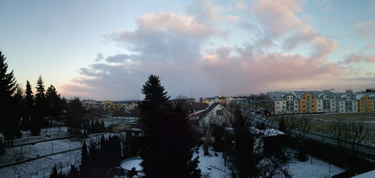 Začíná se protrhavat oblačnost ..Ppo letech je tu přes 20cm sněhu.ceka nás arktická noc s teplotou kolem -20C.