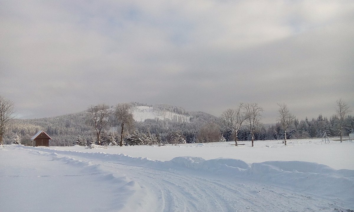 dopoledne slabé sněžení,oblačno mírný nárazový vítr,místy se tvoří sněhové jazyky
