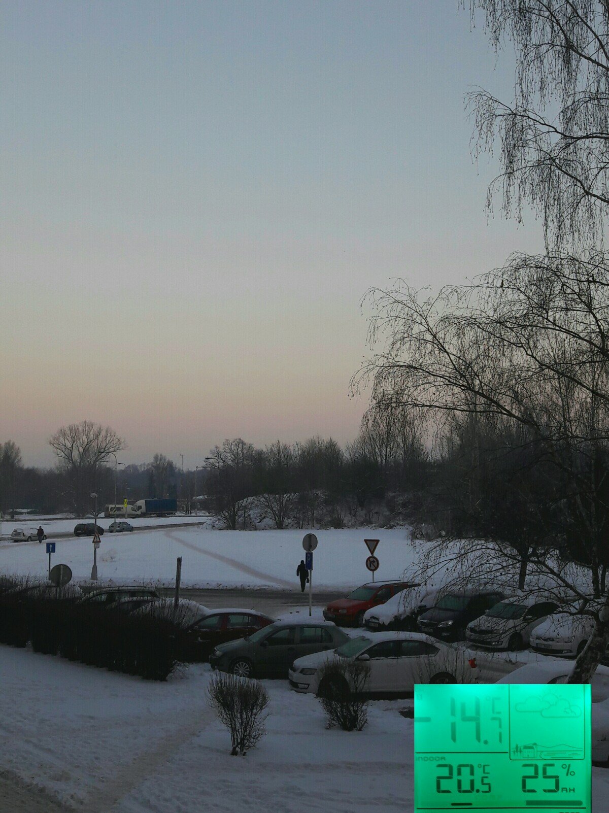 Oblačnost 10,2%, zákl.oblačnosti 964,82m.n.m., tlak 1018,1hPa→, dohlednost 18km, rel.vlhkost 79,9%, abs.vlhkost 0,73g/m3, SSV vánek 21° 0,7m/s(1 Bft), poc.teplota -26,12°C, ochl.větrem -23,50°C, tepl.ros.bodu -24,26°C, tepl.mraků -26,02°C, HUMIDEX -26, délka dne u nás = 8hod.33min.7vt.