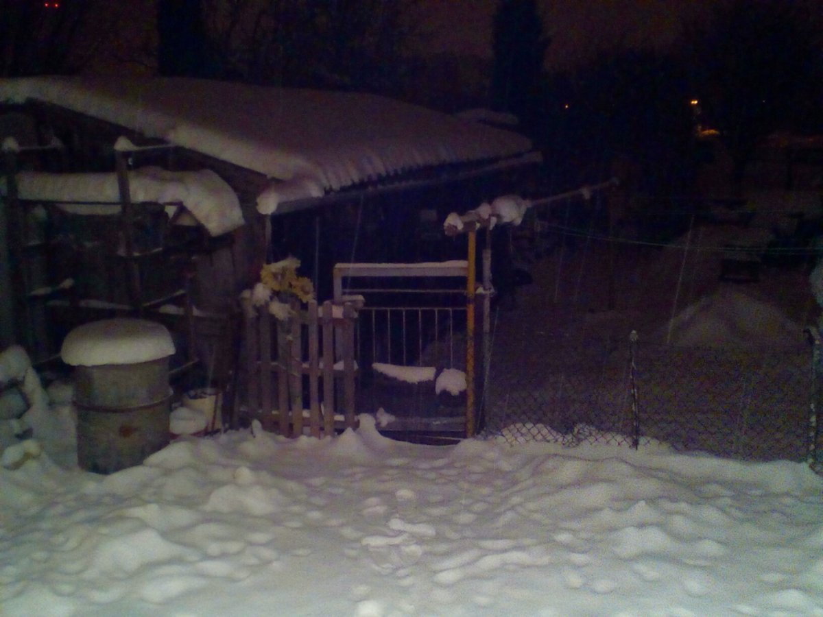 Hustě sněží, zatím bez silného větru. Meteostanice mi předpovídá bouřku, což asi není úplně mimo, vzhledem k tomu, že se při přechodu fronty objevila ojedinělá blesková aktivita na Liberecku.