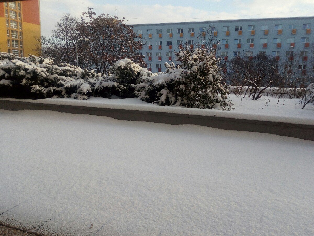 Ještě před hodinou -5,teď se blíží sněh. přeháňka, nový sníh 7cm.