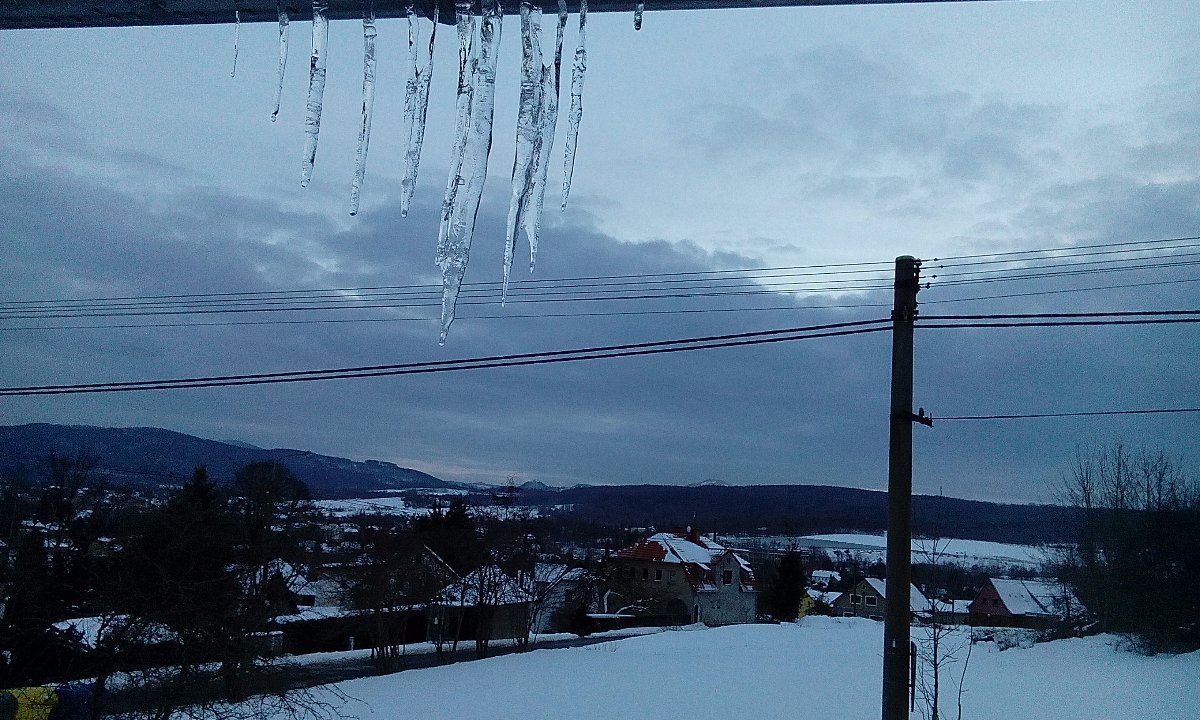 Teplota ve 2 metrech nad nulou, ale díky přízemnímu mrazu a zmrzlé půdě sníh netaje. Vane mírný jižní vítr, tlak: 1011 hPa.