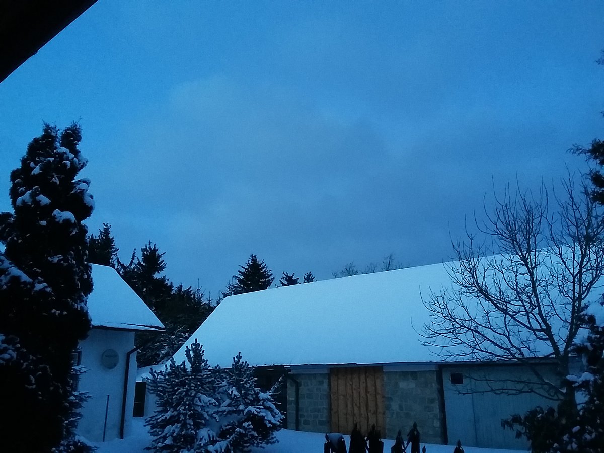 celý den sněží, jen intenzita kolísá, sněhová vrstva 30-40cm