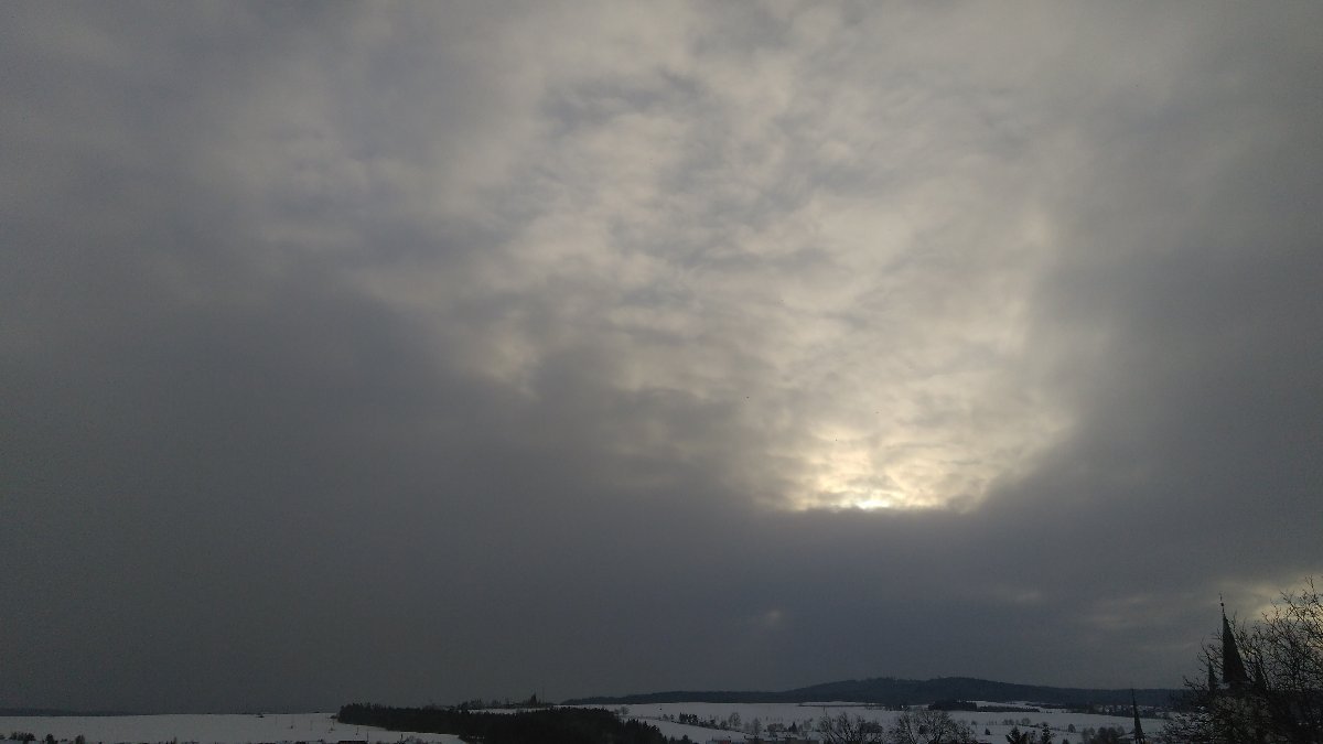 ... ustálené počasí s občasnými sněhánkami, (za 24 hod cca 2 cm nového sněhu), popolední teploty ("tání") chvilkově nad 0, mírný spíše SZ vánek, převážně zataženo, jen občas protrhaná oblačnost max. na 8/10 - sluníčko skoro ne :-)...