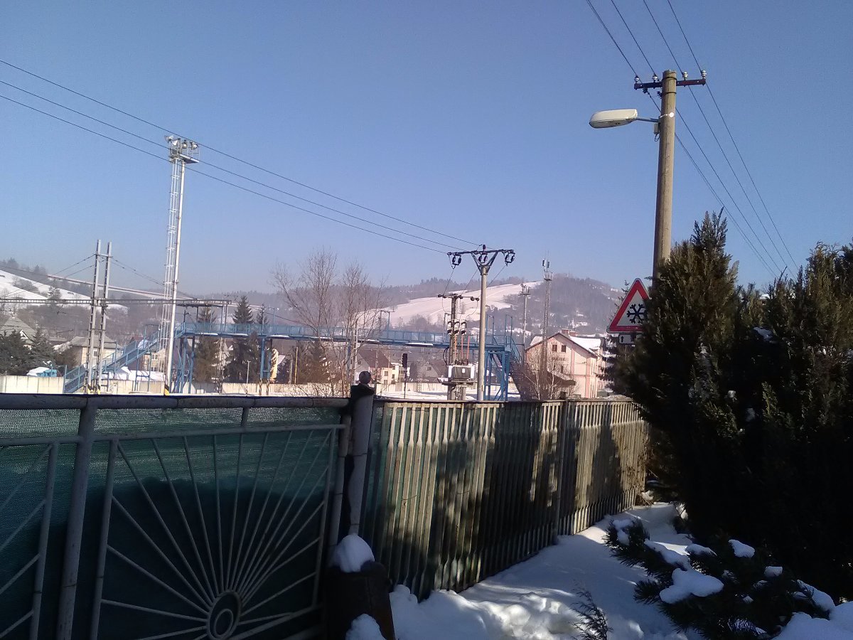 zataženo, drobně sněží, mrznoucí mlha, tvoří se námraza, slabý vítr