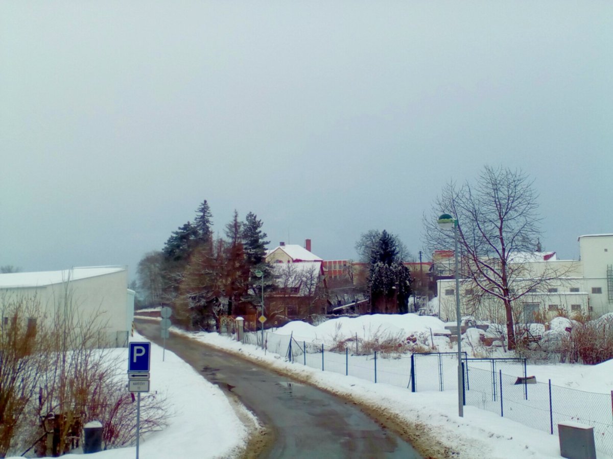 ... drobně sněží, břečka na nasolených silnicích, na chodnících mokrý sníh, kapající rampouchy, zataženo, mlha a bezvětří ...