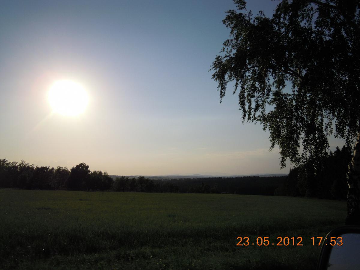 Polojasno,vlhkost:34%,vítr:5m/s-SV.Fotka z Mažické sempry,pohled na Borkovice a nad nimi Veselí nad Lužnicí.