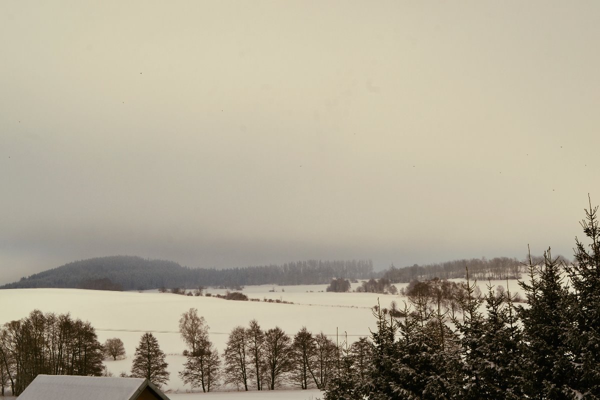 Zataženo, mlha, mírný JV vítr, tlak 1013 hPa.
