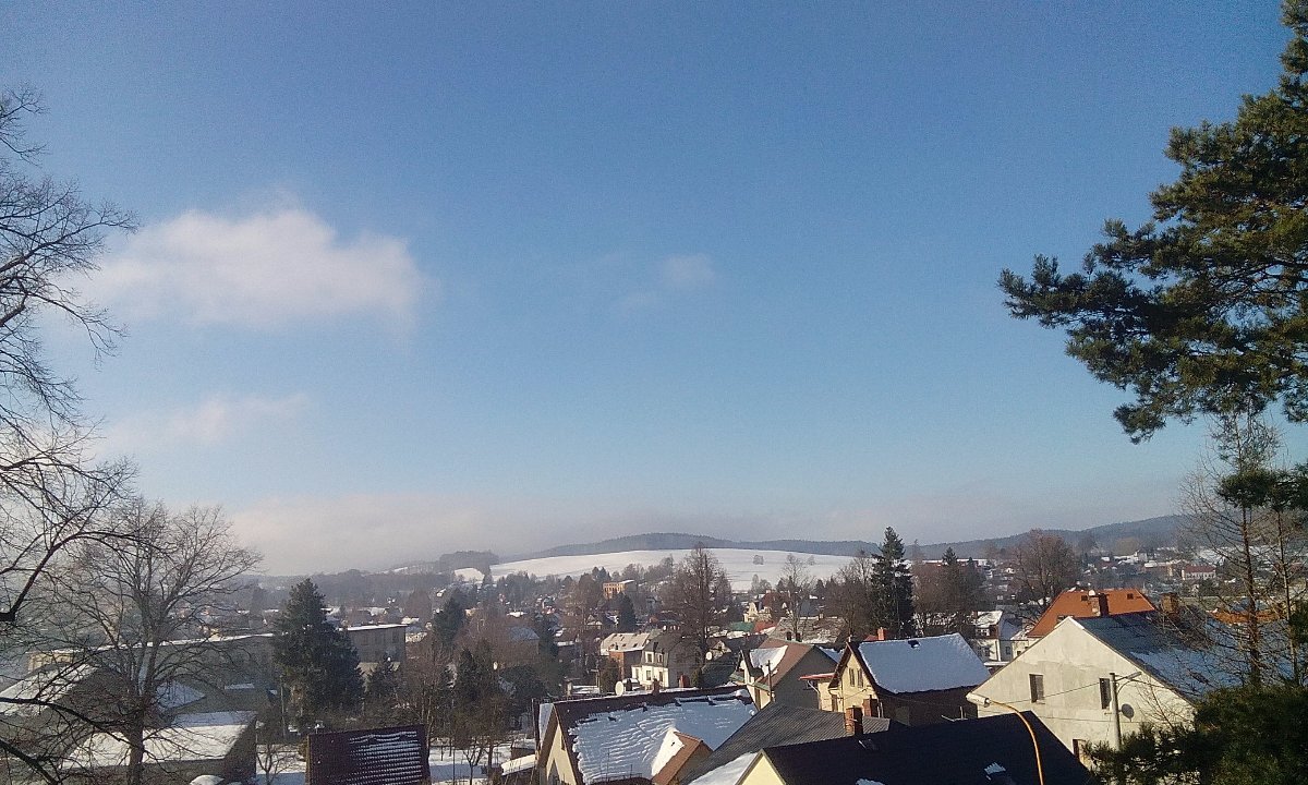Začíná se vytvářet mlha, tlak 1005,4 hPa, JVV vítr 1-4 m/s.