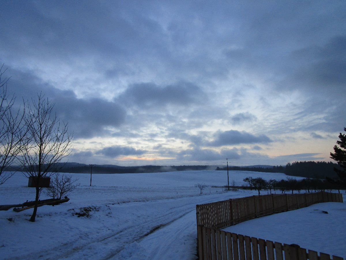 Mlha, oblačnost 100%, zákl.oblačnosti 548,91m.n.m., tlak 1006,9hPa→, ZSZ vánek 293° 0,8m/s(1 Bft), poc.teplota -2,01°C, ochl.větrem 0,21°C, tepl.ros.bodu -0,23°C, tepl.mraků -1,21°C, HUMIDEX -1, délka dne u nás = 9hod.39min.24vt.