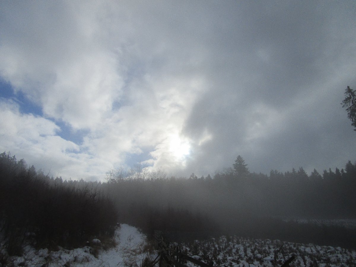je mlhavo,teď momentálně slabý déšť asi tak před hodinkou sněžilo.